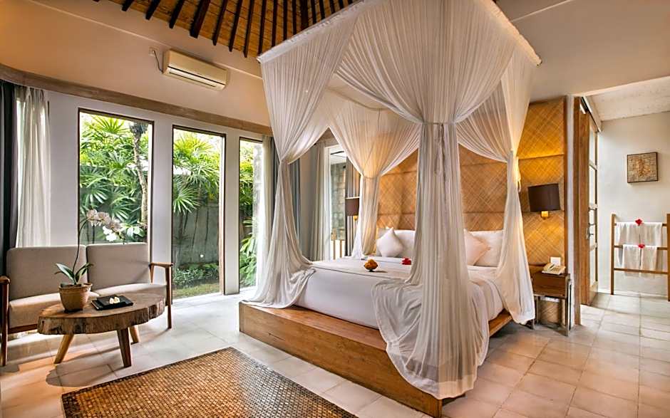 Featuring a private pool with a sun deck, this villa is more spacious and accommodates up to 4 guests. Guests enjoy views of the garden and rice fields. It comes with a dining area, seating area and a flat-screen satellite TV. Private bathroom offers bath and shower facilities as well as free toiletries. Guests who stay for a minimum of 5 nights enjoy 20% discount on food and beverages. Guests enjoy: - Welcome drink - Fruit basket - Scheduled shuttle to Ubud center - Scheduled Balinese activities - Scheduled village trekking - Daily afternoon tea