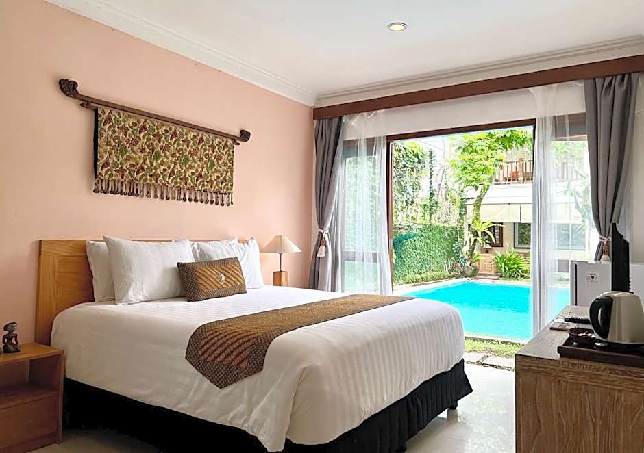 Really helpful staff, lovely room & spacious bathroom. Good AC, lovely swimming pool, peaceful even though on the main road. Good comfortable bed & lovely to have a sofa to sit on. Nice cold fridge in room. Staff were available even throughout Nyepi (Balinese Hindu New Year) which was very kind.