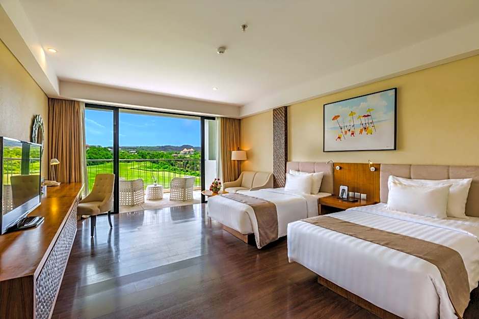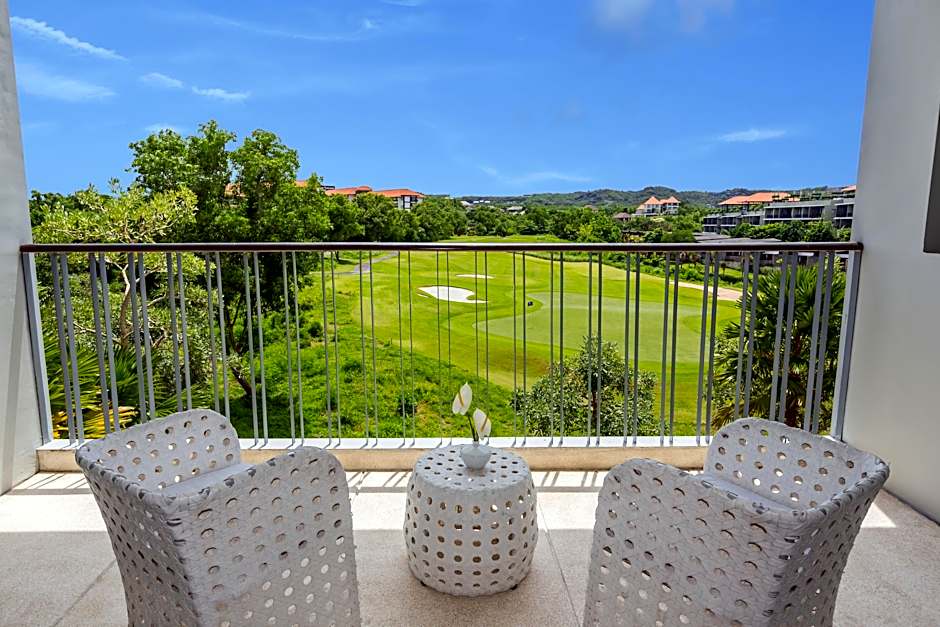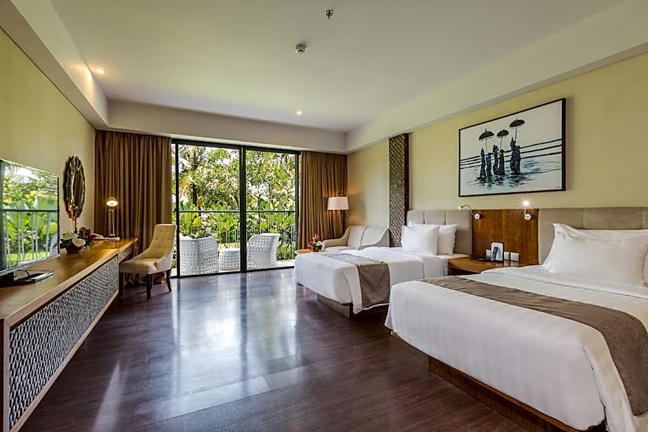 This air-conditioned twin/double room has a private balcony with a seating area overlooking the garden and golf field, a personal safe, ironing facilities, and a flat-screen cable TV. Private bathroom comes with a shower, bathtub and slippers.