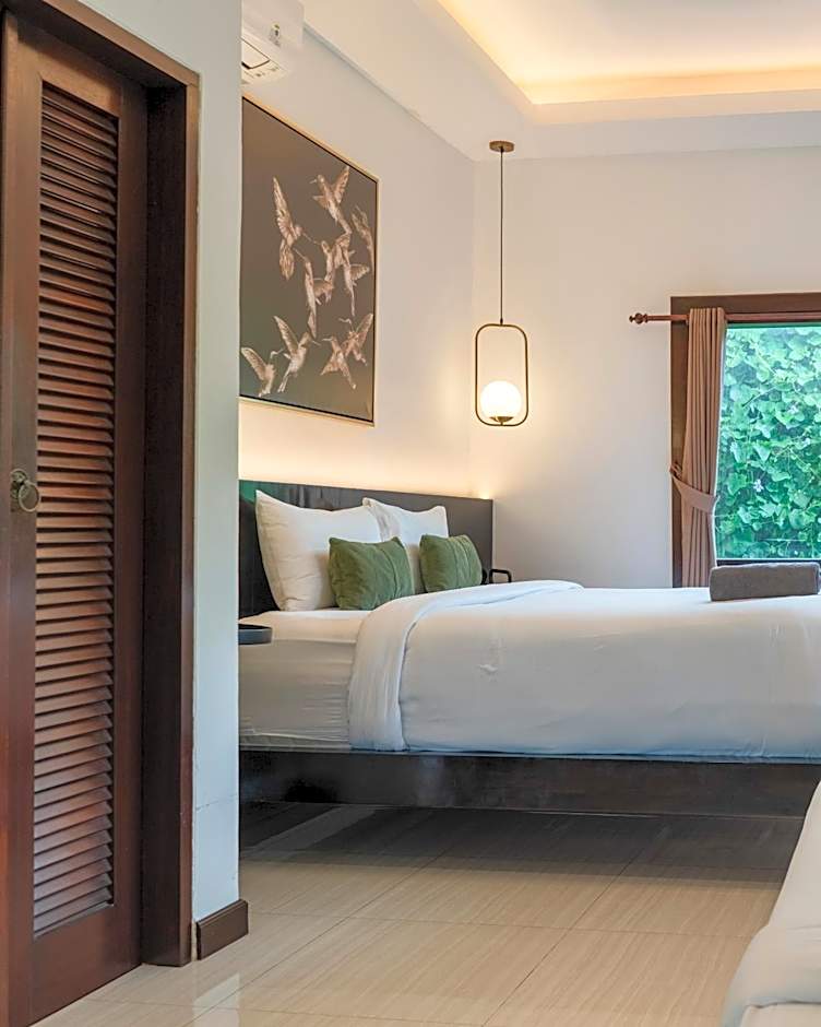 Room choices include Room - 2 Bed, Deluxe, Family Studio, and Deluxe, Balcony, all non-smoking and accommodating 2 adults and 1 child. Payment options include Cash, Visa, and Mastercard, making travel days smooth and straightforward. The property is located at Jl Labuan Sait Padang Padang, Uluwatu, Indonesia, a short hop from the city center.