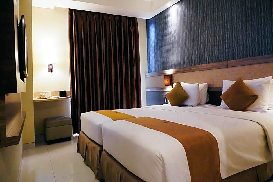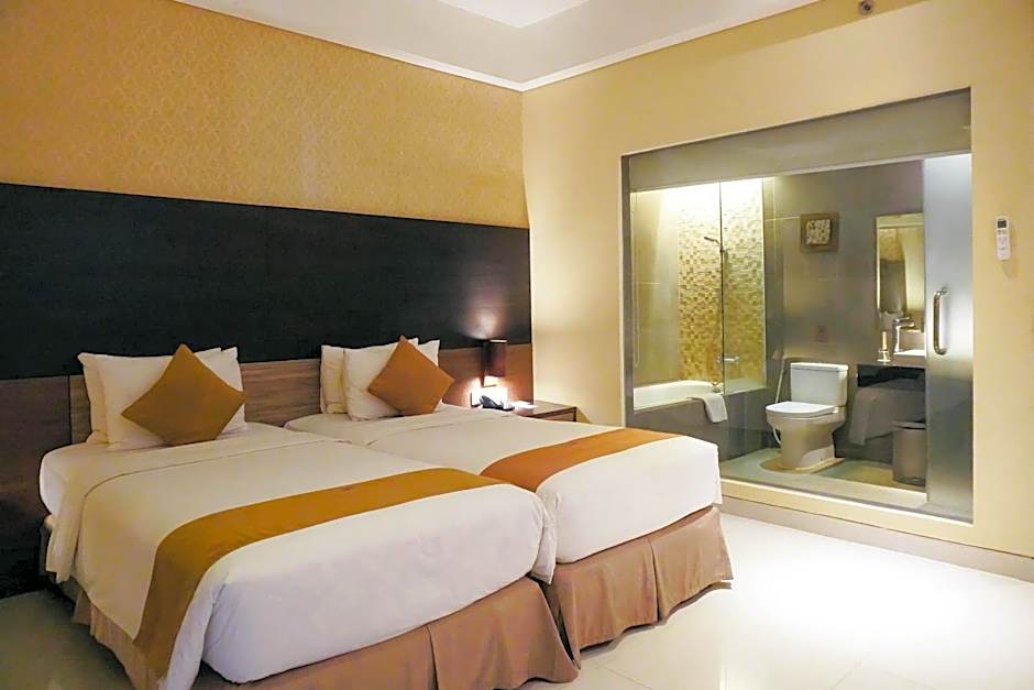 The Crystal Lotus Hotel Yogyakarta offers various room types including superior rooms, deluxe rooms, and suites. Occupancy varies from single to triple occupancy. Bed sizes range from single to king-sized beds, and room sizes are spacious and comfortable for guests. Smoking is not permitted in all rooms.