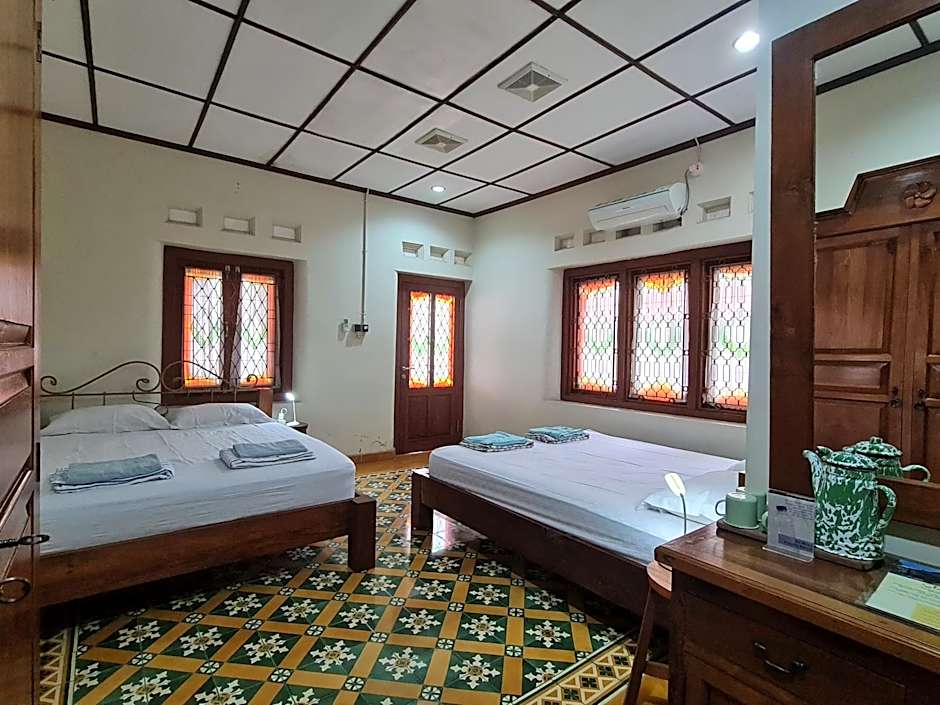 A varied selection of room types keeps options flexible: the Double Room with a Queen bed (280 sqft) sleeps 2 adults and 1 child; the Family room (301 sqft) also accommodates 2 adults and 1 child with two Queen beds; the Triple Room (258 sqft) pairs a Twin bed with a Queen bed; the Twin Room with a Private Bathroom provides a simple, private setup; and the Deluxe Double Room at 216 sqft rounds out the lineup with space for 2 adults and 1 child. Non-smoking rooms are standard across offerings.