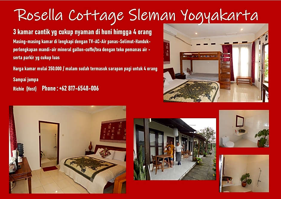 We wanted a rural location, close to the city of Yogyakarta. Rossela Cottage, seemed fitting, and was a good choice, 15 minutes by Grab, in the heart of the city for 2 euros and lovely outside. Enjoy the rice fields on the terrace, and chili plantation, the frogs, the swallows. A al a carte breakfast in a fresh cool environment, in the evening on our terrace enjoy the lovely cool 24 c, and then the next day on the road again, Richie perfect host. He also helped with excursions, but Grab is perfect for travelling around Asia these days.