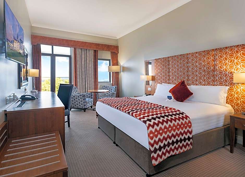 The location of this lovely big hotel was perfect for access to Dublin as the Metro was a few blocks away and we did not wish to take our car into Dublin. The car park at the hotel was free with validation. The restaurant and bar at the hotel were excellent and the interior of the hotel was beautiful and well kept. Our room was quiet and the bed so comfortable. Of special note: the manager of this hotel was involved with the guests of all ages enquiring about their stay and interacting with them. Very impressive! He was also very much a presence in all areas overseeing that employees were keeping the guests happy as well.
