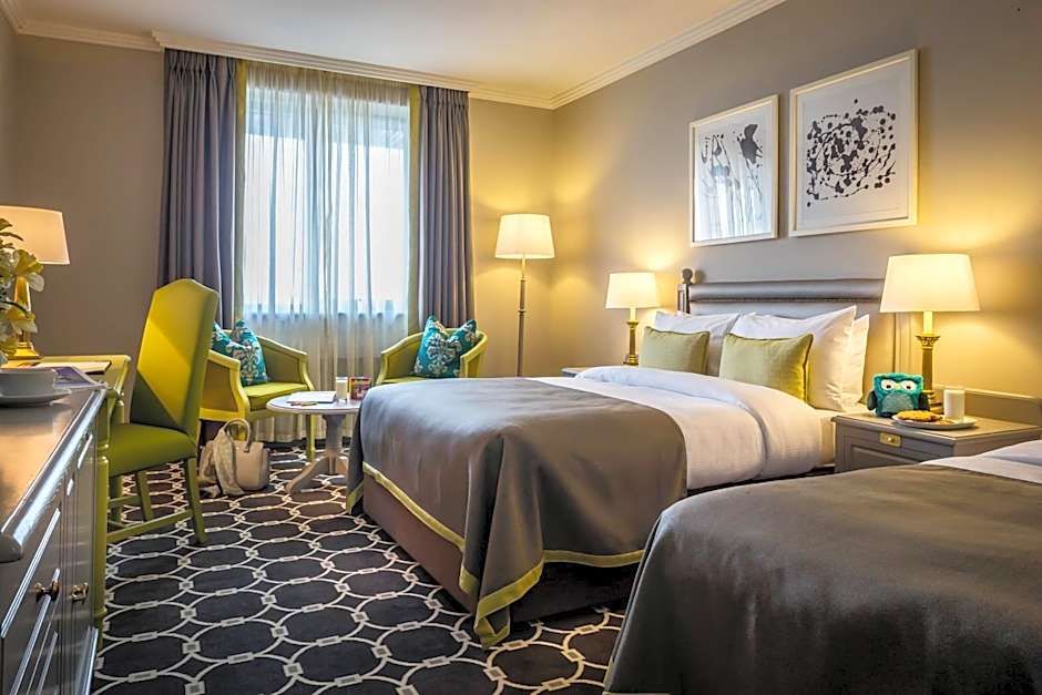 With free Wi-Fi, this unique second-floor suite is accessed through a private hall, leading to a spacious living room. It features a super king-size bed, 2 state-of-the-art plasma TVs and a bathroom with an oversize shower and double spa bath. Guests can enjoy a late check-out option and use of the health and fitness club.