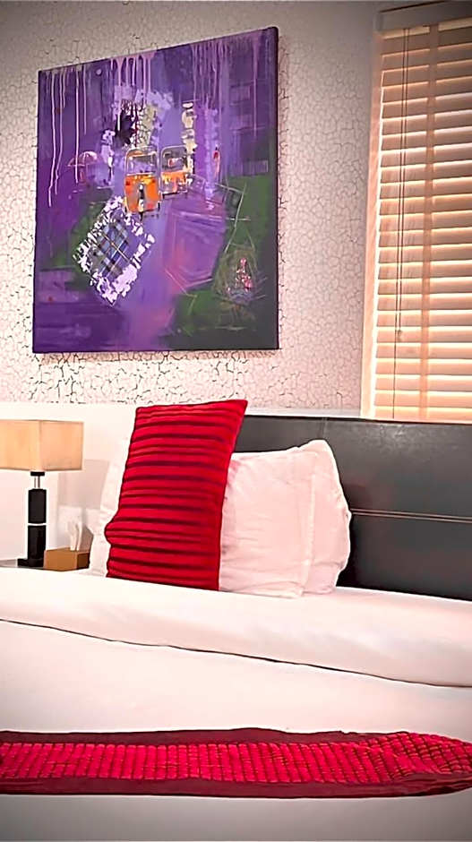 This suite has 2 bedrooms and 2 bathrooms.There is 1 king-size bed and 2 single beds, with an open archway linking the 2 bedrooms. Extras include complimentary toiletries, WiFi, hairdryer, fridge, ironing facilities, TV, DVD and tea/coffee making facilities.