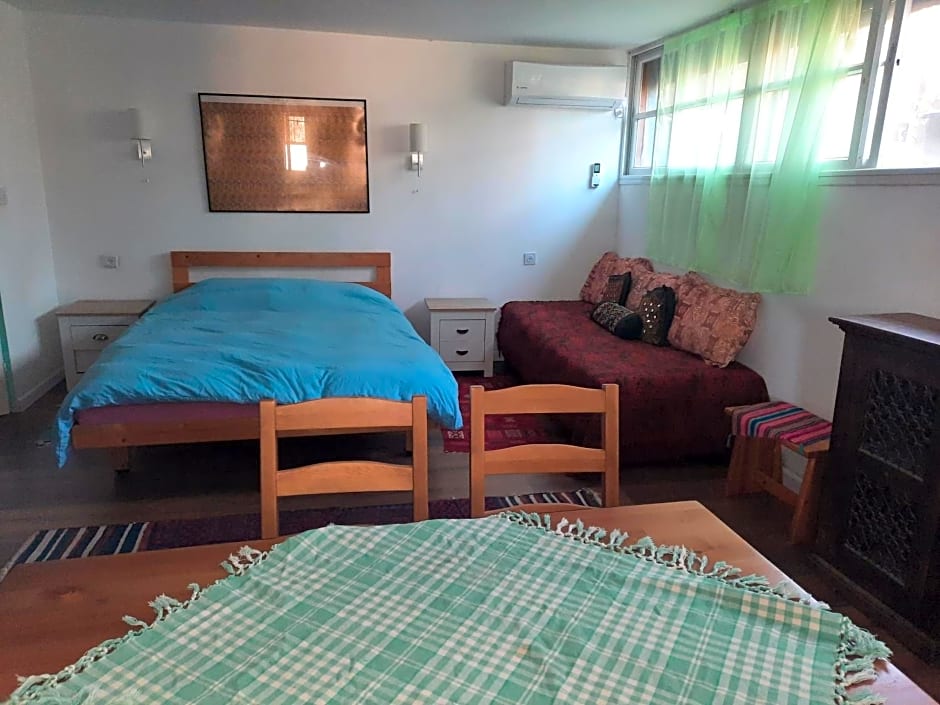 For those who love to indulge outdoors, the Green House has you covered with cozy barbecue facilities and a picnic area. It’s the perfect setting to host a casual dinner under the spectacular Israeli sky, sharing laughs and good food with family and friends. When the night falls, retreat to your spacious family room—designed for up to two adults and one child—that invites a restful sleep after a day full of exploration.
