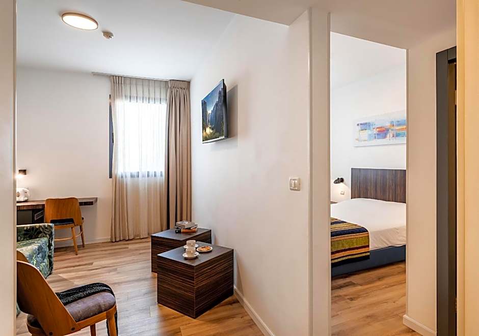 Offering free toiletries, this family room includes a private bathroom with a shower. The family room has tiled floors, a seating area with a flat-screen TV with satellite channels, air conditioning, a mini-bar, as well as a tea and coffee maker. The unit has 2 beds.