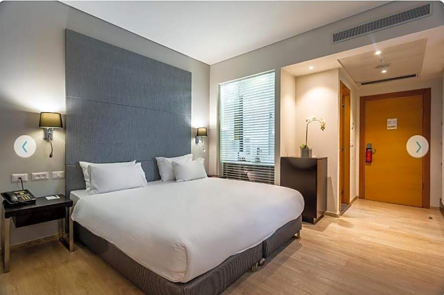 Easy to get to off the highway, 14 free guest parking spots in a well-lit, secured underground garage that was almost empty while visiting in February, 2025. 24/7 English and Hebrew speaking front desk staff, with free tea and cookies. Quiet rooms, mini fridge, large bed, large window with sitting bench. Netflix included in stay.