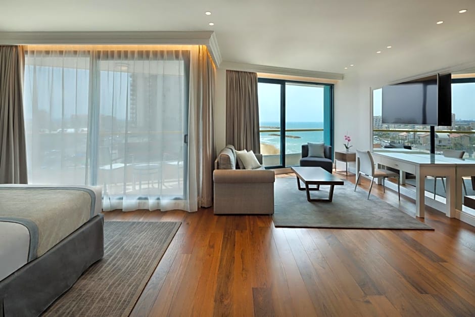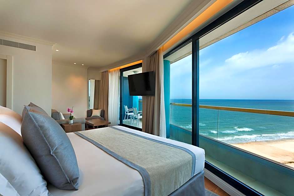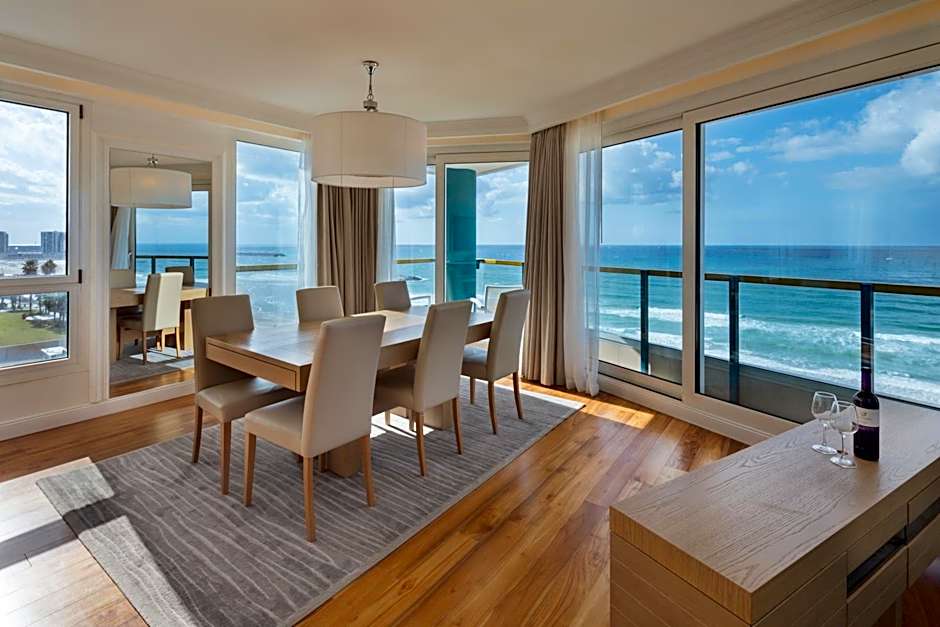 Herbert Samuel Okeanos Suites Herzilya sits beachfront in Herzliya, Israel. The address is 50 Ramat Yam Herzliya, about 1.5mi from the city center. Breakfast is offered on site, and guests can enjoy free Wifi and air conditioning to start days right.