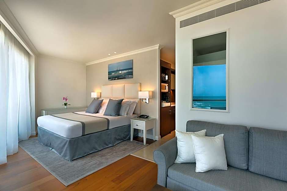 At Herbert Samuel Okeanos Suites Herzilya, guests can enjoy their time at the hotel by indulging in various leisure activities. The hotel offers a beachfront location, allowing guests easy access to the beach. They can relax on beach chairs or under beach umbrellas, soaking up the sun and enjoying the picturesque view.