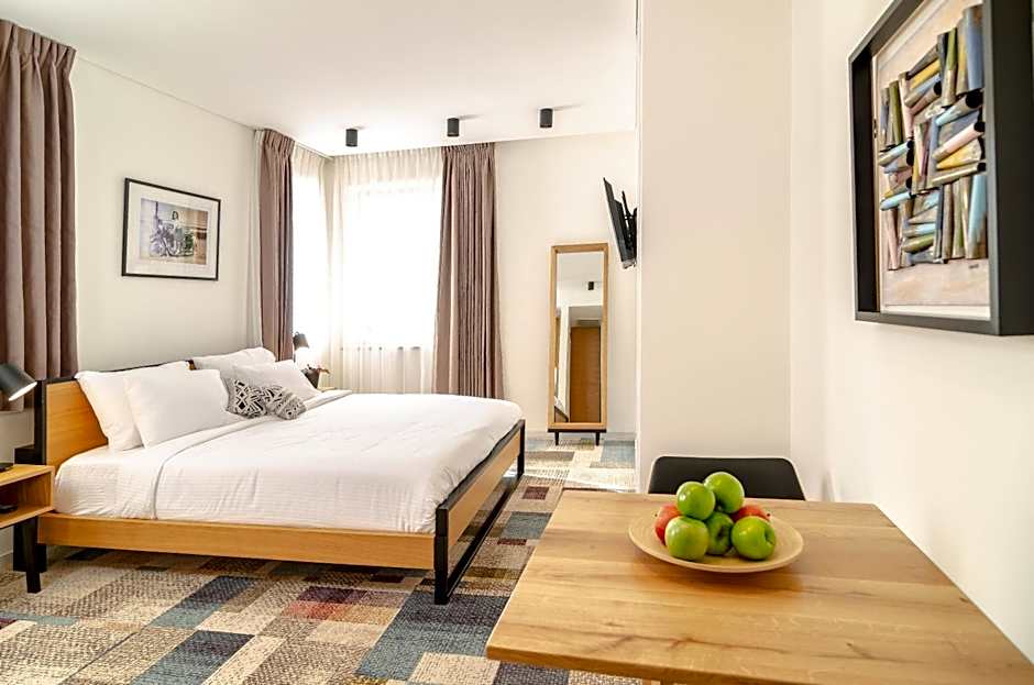The hotel is a 10 min walk to Machaneh Yehuda’s and less than 10 min to Jaffa Road. The hotel has bed. Beautifully renovated in an old building and they have thought of everything for the room. I love the history of the family who owns the hotel. The owners invited me to join their breakfast. They were so warm and friendly