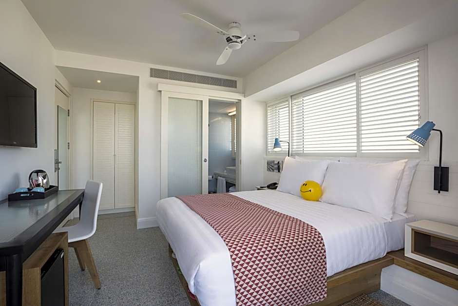 The staff were friendly and helpful, the room was compact but comfortable - good sized comfy bed, nice bathroom with a good shower and all clean and tidy. It was a nice touch to have a Nespresso machine and complimentary soft drinks in the room, and a daily 'happy hour' for guests to join. The port and the beach are very close by and it's easy to walk or get the bus to central shopping areas. They also offered free cycle rental. Checkout was at 12pm and they were able to store bags for the rest of the day.