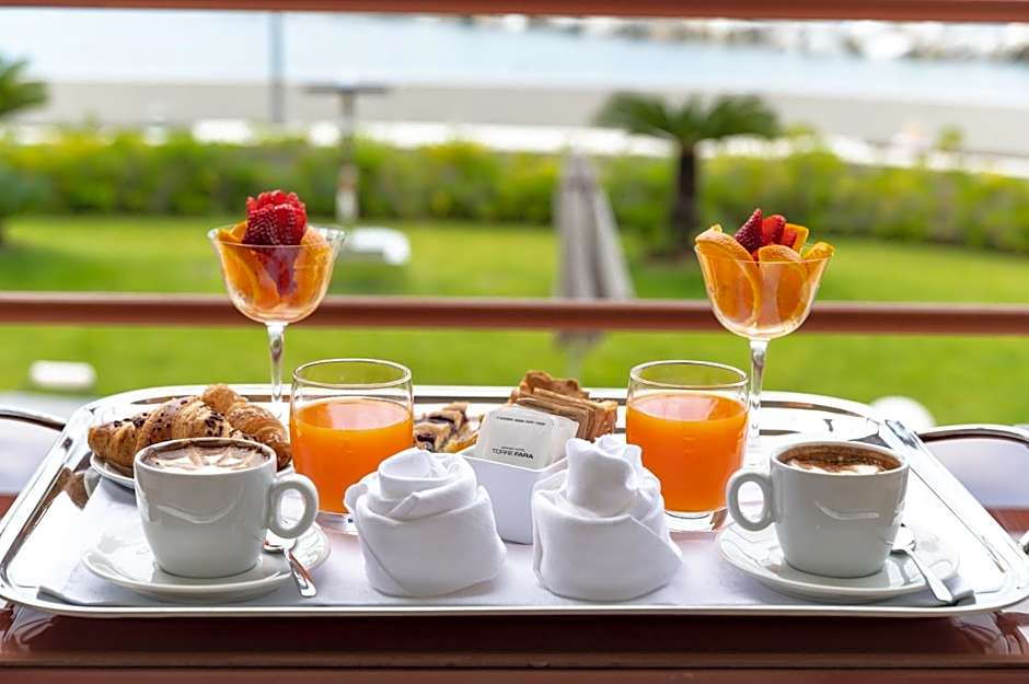 Trascorsa una giornata di esplorazione, perché non concedervi una delizia culinaria proprio all'interno dell'hotel? Dirigetevi al Ristorante Panoramico Grand Hotel Torre Fara, dove l'ambiente trova il perfetto equilibrio tra chic moderno e fascino tradizionale. Sia che desideriate una cena romantica o un ritrovo in famiglia, questo locale ha qualcosa per stuzzicare il palato di tutti. Con un menù squisito che valorizza la cucina italiana e mediterranea, con un'attenzione speciale ai frutti di mare freschi e alle specialità locali, questo ristorante promette un'esperienza gastronomica indimenticabile. Non dimenticate di abbinare il vostro pasto con un bicchiere di ottimo vino italiano mentre vi godete le viste panoramiche che completano perfettamente il pasto!