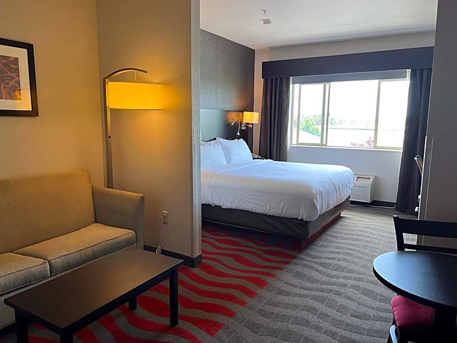 This hotel was a wonderful stay! While there were minor items that needed repair (small maintenance issues), there was nothing major wrong. 1. The hotel staff was very friendly and accommodating. My husband had back surgery during our stay and they gave us the closest possible room to the exit, which was also a handicap room. We were so grateful for the extra space. When it came time to get him comfortable afterwards, they provided us with 2 extra large pillows that were just perfect for the job. 2. Speaking of comfort, the bed - UGH! It was most definitely one of the more comfortable beds I've slept in, in a very long time. The pillows were marvelously soft and the room was inviting, smelled clean, and looked sparkling fresh! 3. Upon walking into the lobby, again there were some spots in the carpet and small things like that that needed attention - BUT is was SO CLEAN. Shiny, and smelled so fresh! This was refreshing after our last stay in boise at another hotel where felt like maybe it just wasn't the standard in the area. But this place topped it! 4. The pool was huge. The pool itself was clean, I'll get to the negative in a moment. 5. Huge breakfast room, lots of options. Maybe not the biggest variety, but most of the favs! Lots of setting. Decor is nice. Also clean!! The breakfast lady was in there nearly the entire time cleaning up and checking on things.