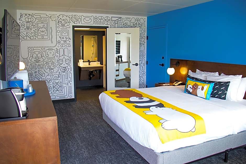 Infine, l'emozione del tuo soggiorno è arricchita dalla vasta gamma di opzioni di camere disponibili per soddisfare le esigenze della tua famiglia. Dai accoglienti Queen e King Rooms a layout fantasiosi con letti a castello per i più piccoli, ogni sistemazione offre un'atmosfera calda e invitante. Ogni camera, dotata di arredi confortevoli e tocchi moderni, ti permette di ricaricare le energie dopo una giornata di risate, divertimento e feste in piscina. Quindi fai le valigie e preparati a creare ricordi indimenticabili al Cartoon Network Hotel, dove divertimento, comfort e avventura si uniscono in perfetta armonia!
