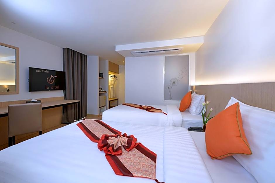 Le D'Tel Bangkok offre una base vivace e accogliente per i viaggiatori con un gustoso programma gastronomico in loco. Le opzioni di ristorazione includono il Portulaca Restaurant e il Canna Cafe, dove i sapori thailandesi e internazionali si incontrano in un ambiente moderno. L'area esterna presenta una piscina sul tetto con acqua salata e vista e una piscina separata per bambini, affiancate da un centro fitness gratuito e WiFi gratuito. Il parcheggio è comodo con parcheggio privato gratuito e parcheggio in loco gratuito, mentre reception 24 ore su 24, camere non fumatori, ascensore, terrazza, bar, banco escursioni, strutture per riunioni/banchetti e servizio in camera soddisfano le esigenze quotidiane. È disponibile una navetta aeroportuale a pagamento, e aria condizionata oltre ad articoli da toilette gratuiti mantengono i soggiorni confortevoli.