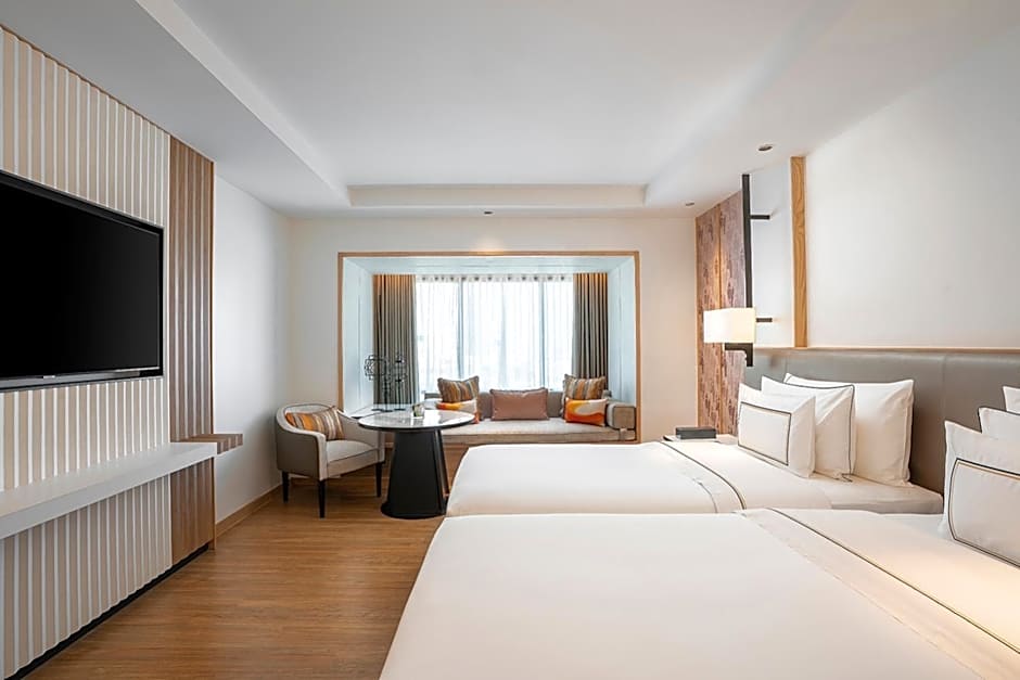 1. ceilings are way too low in some parts of the hotel, to the point where if you’re 1.8 meters you will need to tilt your head. We switched our initial room due to loud AC, got an upgraded room which was bigger but, super low ceilings and a window facing a wall with white stickers on it (to prevent you from seeing you’re facing a wall in a premium room) made it, despite its size, feel claustrophobic. 2. breakfast was overpriced and didn’t offer enough of a selection.