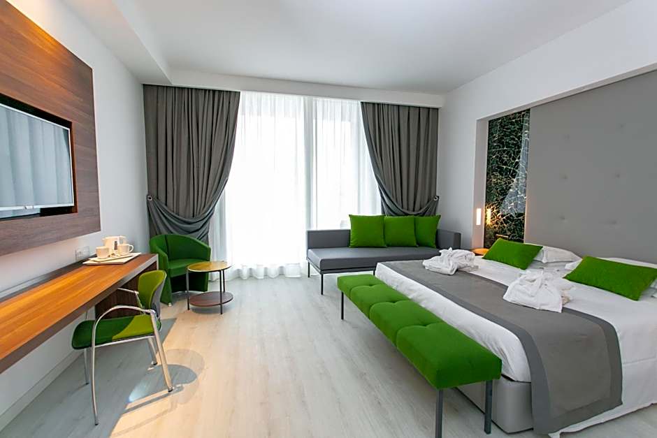 The spacious twin/double room features air conditioning, soundproof walls, a terrace with pool views as well as a private bathroom boasting a shower.