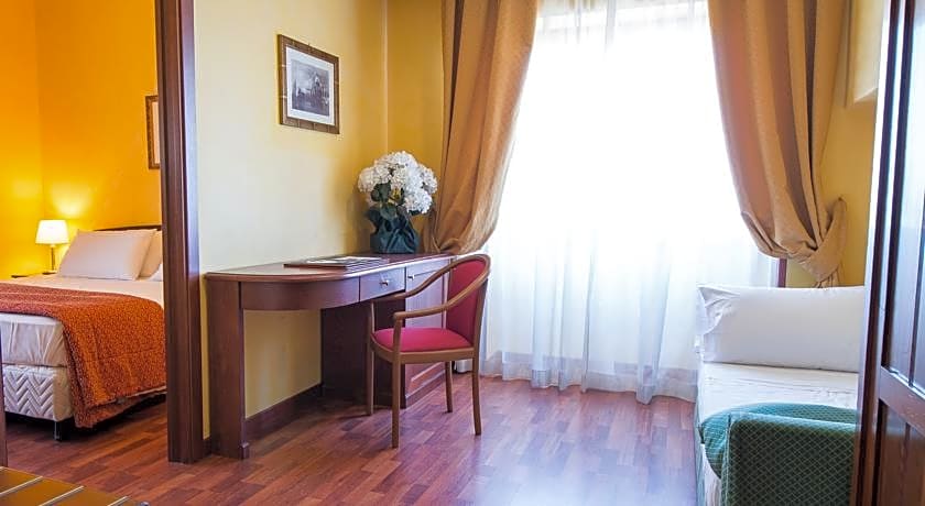 Hotel Della Valle offers a variety of room types to accommodate different needs and group sizes. The rooms include Triple Rooms with a queen size bed and four twin beds, Economy Double Rooms with a queen size bed and two twin beds, Double or Twin Rooms with a queen size bed, and Quadruple Rooms with a queen size bed and six twin beds. All rooms are non-smoking and range in size from 151 sqft to 301 sqft.