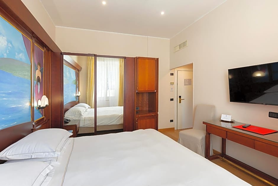 The Grand Hotel Mediterranee offers a variety of room types including suites, doubles, and twin-doubles. The rooms range in size from 140 sqft to 269 sqft and can accommodate two adults. Smoking is not allowed in any of the rooms. The beds in the rooms are either one queen-size bed or a combination of one queen-size bed and two twin beds.