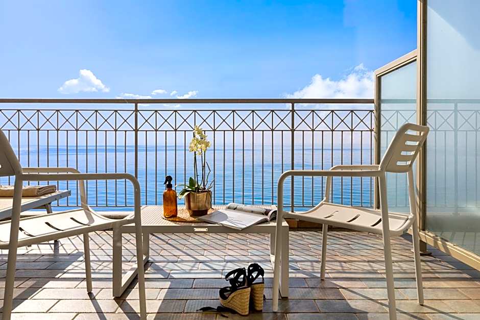 This larger and elegantly decorated room features air conditioning, a flat-screen TV with satellite channels, and views of the sea. Private bathroom is complete with toiletries and bathrobes.