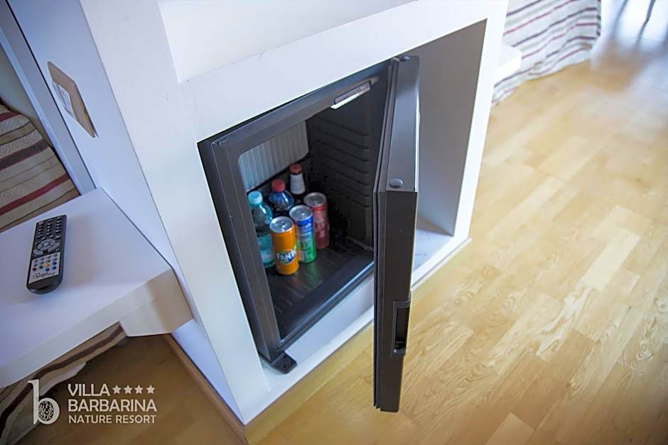 The Villa Barbarina Nature Resort offers a variety of rooms including double rooms, suites, and apartments with a maximum occupancy of 4 persons. Smoking is not allowed in any of the rooms. The rooms feature varied bed sizes such as single, double, and queen beds, with corresponding room sizes for comfort during the stay.
