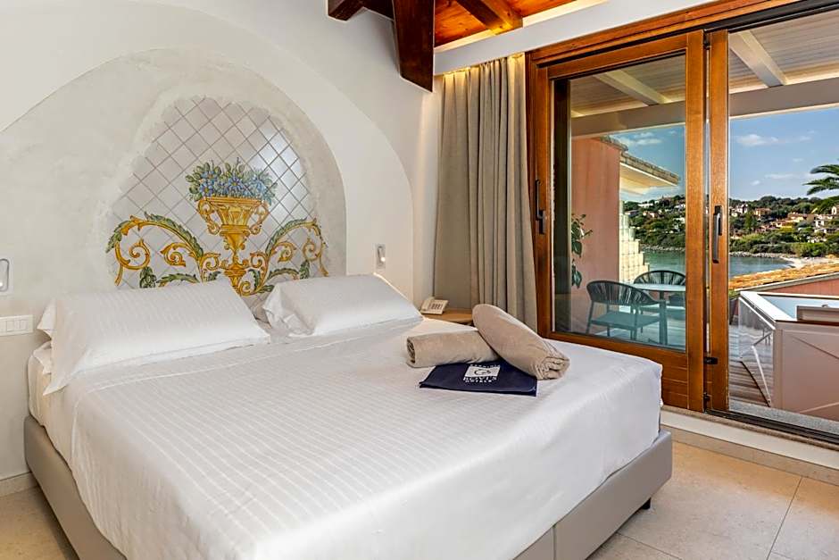 Air-conditioned room with views of the Tyrrhenian Sea and a private balcony, a TV, a mini-bar and a private bathroom with a hairdryer.