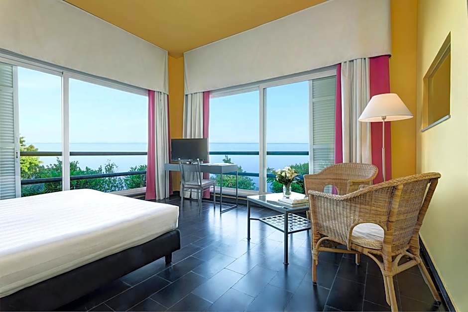 Boasting sea views, this spacious air-conditioned room comes with a 32" HD TV, mini-bar and safe. It features a modern décor with Italian furnishings, neutral colors and carpeted floors.