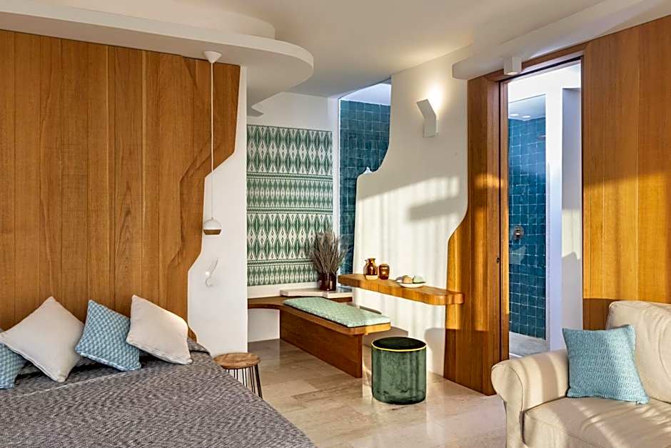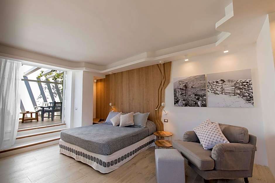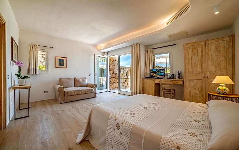 This room has a private entrance, terrace equipped with panoramic view and equipped with sofa, deckchairs, table and chairs. The room contains a shower, walk-in closet, flat screen TV, and wi-fi.