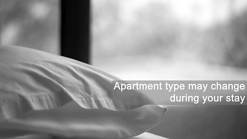 Accommodation options include a mix of studios and apartments. The Studio (377 sqft) offers a queen bed plus two twin beds and sleeps up to 2 adults and 1 child. The Studio, 2 Twin arrangement mirrors this layout in 377 sqft. The Apartment, 1 Bedroom (506 sqft) features a queen bed and a sofa bed, accommodating 2 adults and 1 child. The Apartment, 2 Bedroom (592 sqft) includes a queen bed and two twins, also sleeping 2 adults and 1 child. All layouts are non-smoking and designed for comfortable, self-cufficient stays.