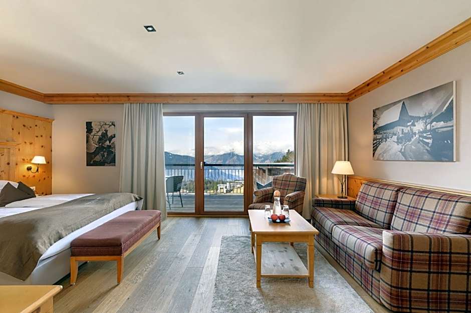 The infinity pool is the standout feature of this family room. The spacious family room offers a mini-bar, a tea and coffee maker, a balcony with mountain views as well as a private bathroom boasting a walk-in shower. The unit has 4 beds.