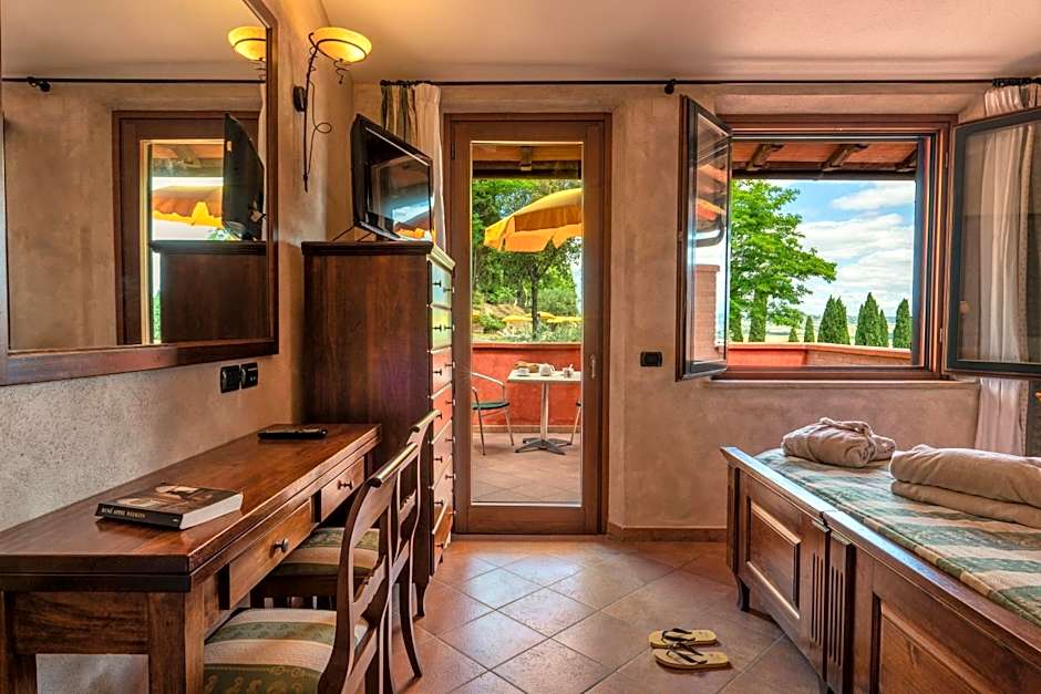 The rooms were comfortable clean and spacious . The bathroom was great with a large shower . The bed was comfortable.. we especially loved our terrace with a view over the valley . All the staff from housekeeping to the front desk to the restaurant were very friendly and accommodating. We did take advantage of the wellness center. The pools , saunas and salt room were the perfect answer for relaxation after a month of travel . The location is absolutely perfect. The surrounding beauty is indescribable. And all the beautiful hill towns nearby are easily accessible.