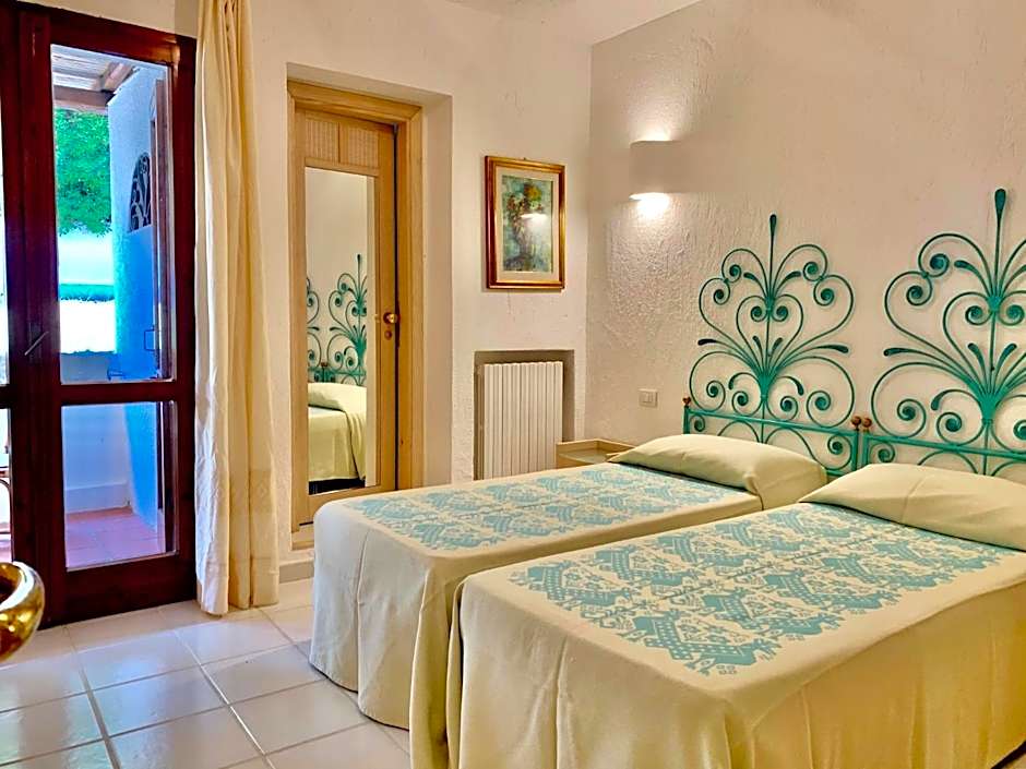 The location is superb. The views from the terrace, pool area and outdoor area are stunning. Very quiet and peaceful both during the day and at night. Walk to the beach, shops, bars, restaurants etc no more than 3 mins away. Only about 30 to 40 min by taxi from Olbia airport. The staff were warm, helpful and friendly. One staff member in particular, Ricardo went above and beyond to extent himself, a valued staff member I would imagine. Lots of different areas to sit outside to enjoy and relax. Our room was spacious and clean. Very large comfortable bed, small fridge and WiFi was strong. Towels were provided for the pool and anything you needed was no problem. The beach is tranquil and so beautiful. A gem of a location ✨️ 💛