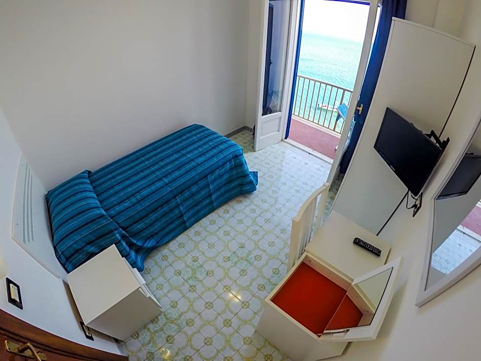 This room offers a sea view balcony. It is simply furnished and comes with a cooling fan.