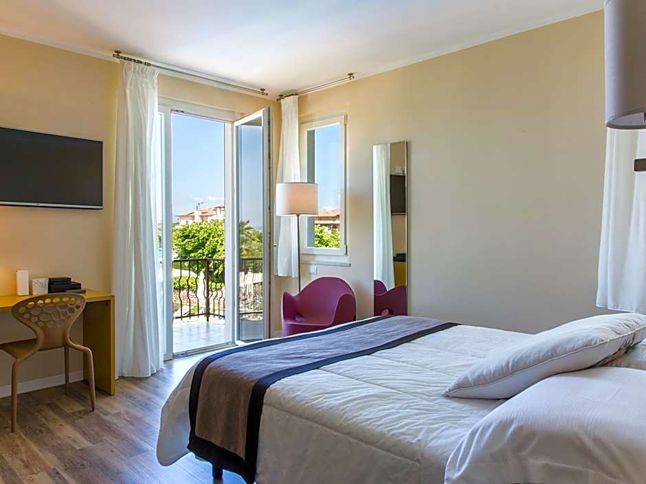 Inside, comfort comes in many forms: a range of room options including suites with lake-view terraces, pool-view doubles, studios, and family suites, all featuring soundproofing, air conditioning, and non-smoking options. The on-site bar, room service, garden, and sun deck complete the easygoing vibe for evenings that feel just right.