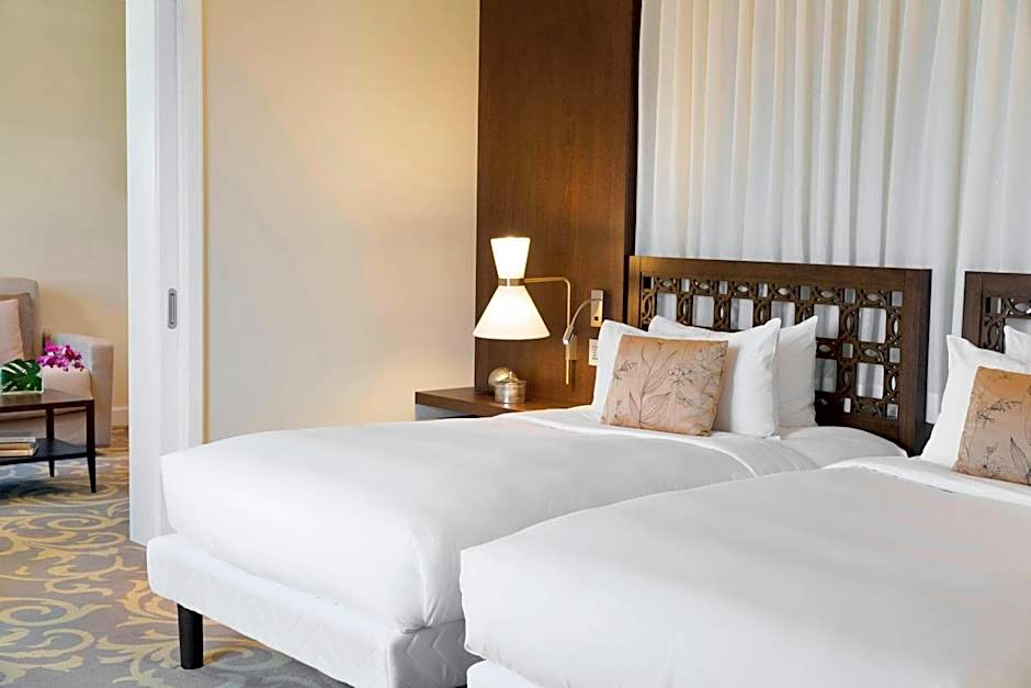 The hotel offers a variety of room types including Twin, TwinDouble, and Suite. All rooms are non-smoking. The rooms vary in size, with sizes ranging from 172 sqft to 420 sqft. The occupancy for most rooms is 2 adults and 1 child, except for the suites which can accommodate 4 adults and 3 children. The beds in the rooms are either King size or Twin beds.