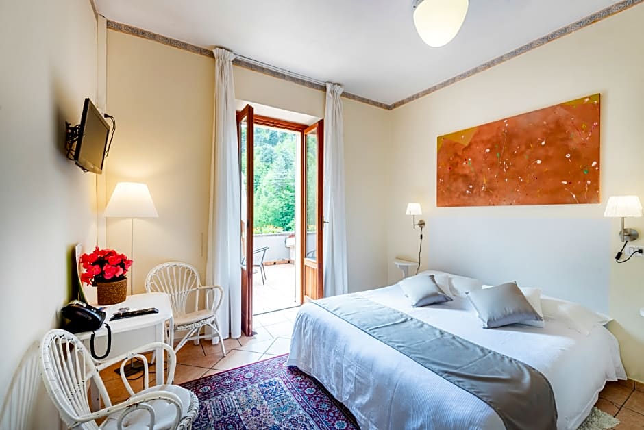 This room offers a balcony overlooking the garden and hills of Bellagio. It features a fan, flat-screen TV and a small double bed (55 in wide).