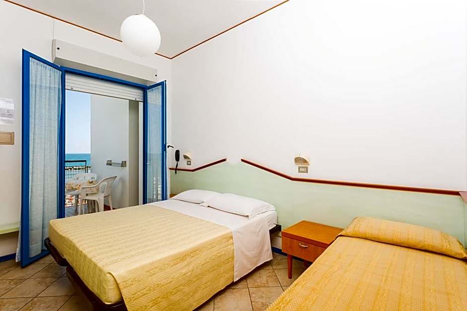 Very nice hotel located right on the beach, I could even swim at night time and enjoy very beautiful sunsets on the beach. The hotel is very close to the bus stop from Rimini. You could walk to the center of Bellaria in the evening to enjoy the night life. The hotel isn't big but very comfortable with welcoming and friendly stuff. The breakfast was good, for me there were enought options and really good coffee. The room was small, there was a balcony but no sea view. The bed was comfortable. Special thanks for a present - very nice beach bag! I really loved it! It's a good hotel for a beach vacation in the nice area. I'm looking forward to come back!