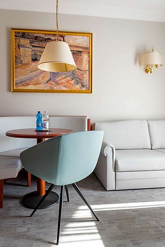Air-conditioned suite with seating area and private balcony. Maximum age of the child 6 years.