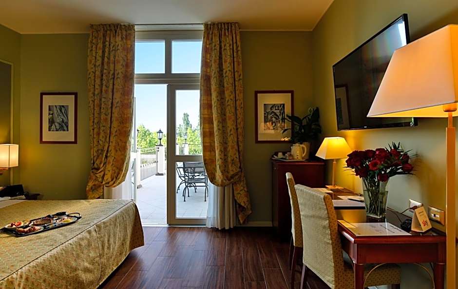 Elegant and comfortable room with a flat-screen TV with SKY channels, and a terrace overlooking Bologna's rooftops or the garden with swimming pool.