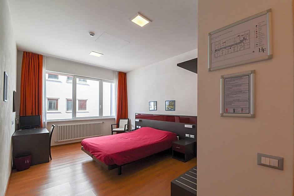 Hotel Fiera offers a variety of room types including Double or Twin Rooms, Single Rooms, and Triple Rooms. Double or Twin Rooms accommodate 2 adults with a Queen size bed and 2 Twin beds, Single Rooms accommodate 1 adult with a single Twin bed, and Triple Rooms accommodate 3 adults with a combination of Queen size and Twin beds. None of the rooms allow smoking. The sizes of the rooms range from 172 sqft to 323 sqft.
