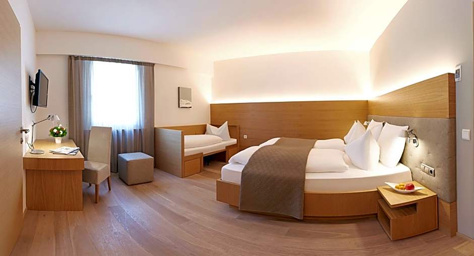 Hotel Post Gries offers a variety of room types including Double or Twin Rooms, Superior Double Rooms, Family Rooms (2 Adults + 2 Children), Triple Rooms, Double Rooms with Balcony, and Single Rooms. All rooms are non-smoking and have different sizes ranging from 118 sqft to 248 sqft. The occupancy varies from accommodating 1 adult in a Single Room to accommodating 3 adults in a Triple Room or 2 adults with 2 children in a Family Room.