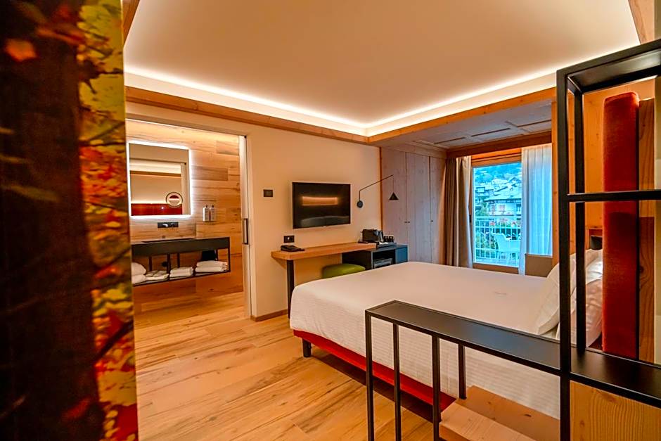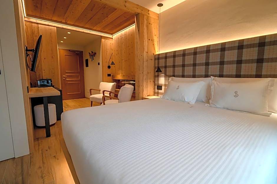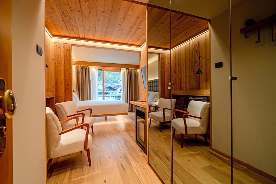 Boasting 360-degree views of Bormio from its private terrace, this very spacious suite is on 2 floors. It features a living room on the lower floor, while the bedroom is upstairs. The bathroom includes a hydromassage shower and a bathtub.