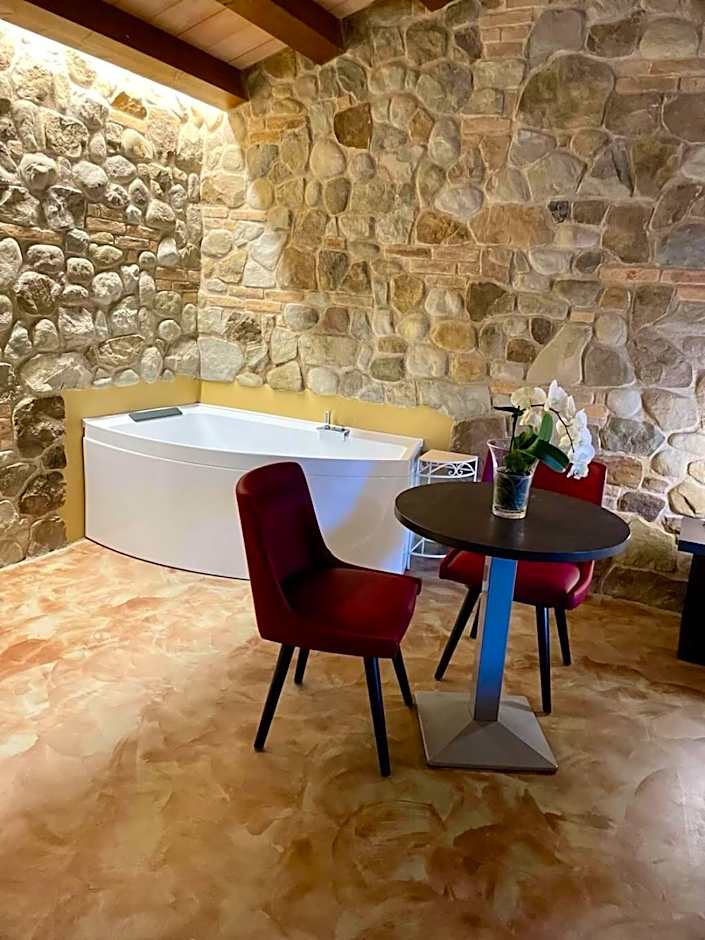 Brisighella’s countryside setting makes for a serene escape, with an outdoor pool that is seasonal and adults-only, featuring heated, infinity, and saltwater design. A terrace invites lingering in the fresh air, while soundproof rooms offer views of either the mountains or the garden for restful mornings and evenings.