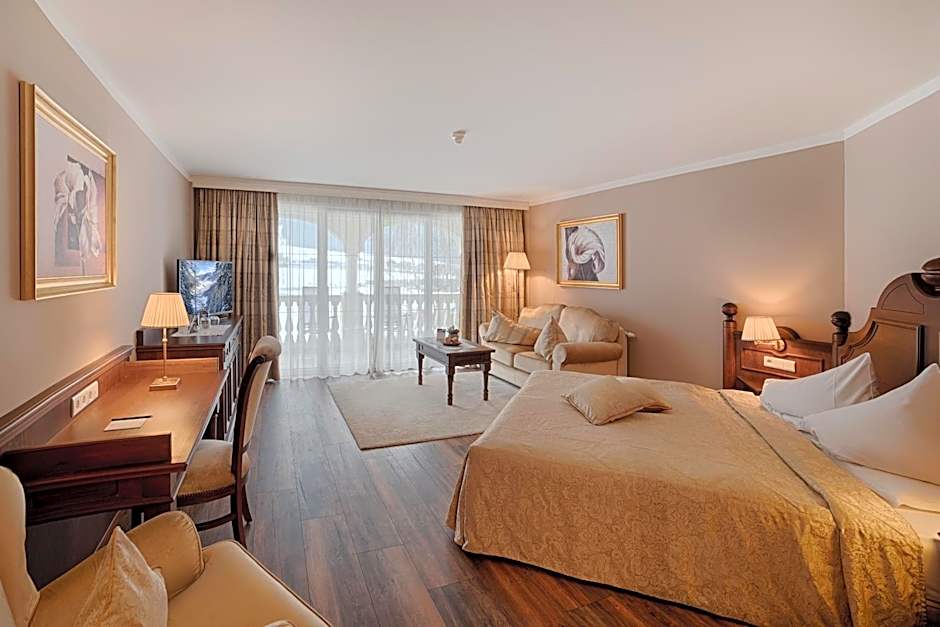 Featuring large windows with panoramic mountain views, this classic-style room offers cozy carpeted floors, satellite TV and a mini-bar.