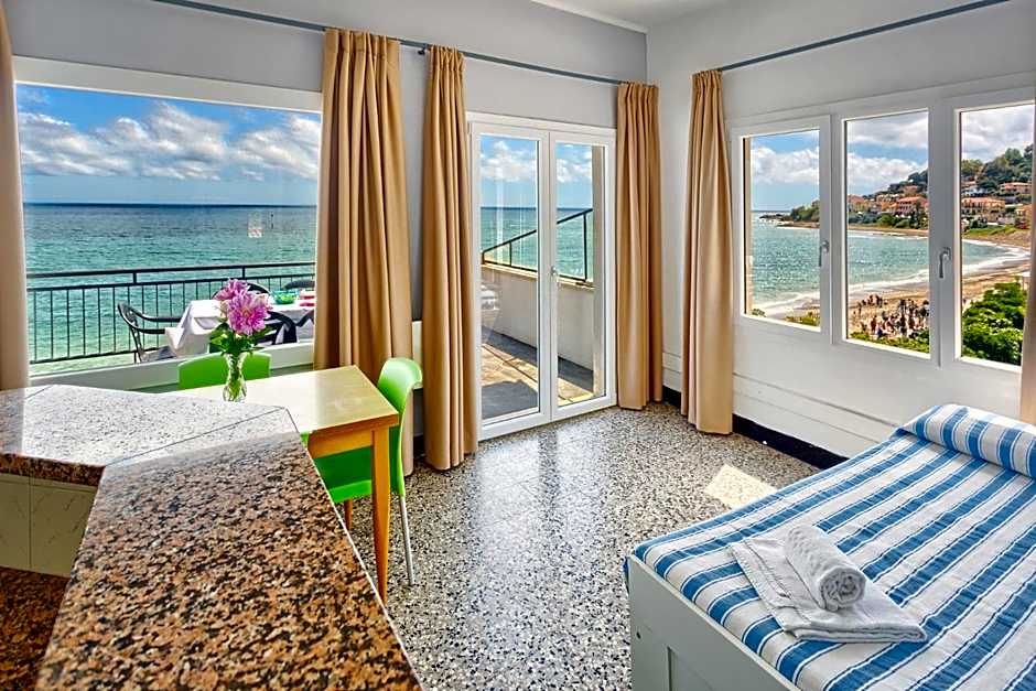 Beach life is easy with free beach umbrellas and loungers, private parking on site, and direct access to the beach and the bar. The family-friendly vibe is reinforced by a garden and playground, and cooking is convenient thanks to kitchenware and a kitchenette. A range of rooms is on offer, including Deluxe (173 sqft) accommodating up to 3 adults and 4 children, Apartments with 1 Bedroom (Sea View) or 2 Bedrooms (Terrace), Studios with Terrace, Studio, and Apartments with 1 Bedroom (Terrace).