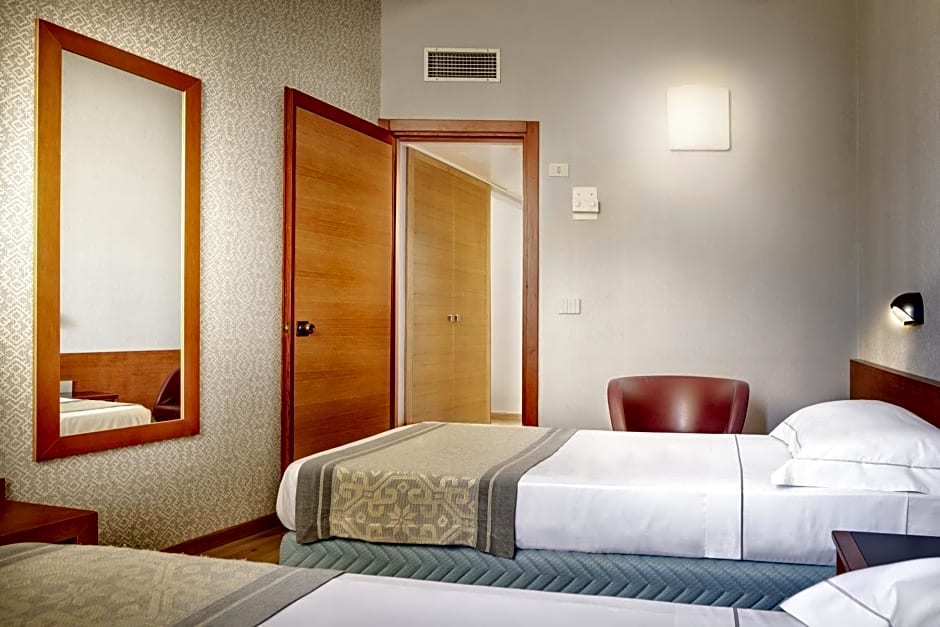 The position is perfect: pedestrian street (no noise) 5 minutes walking distance from train and bus stations. My room was incredibly big, good size for bathroom as well. The airco and the elevator are old but work. Towels were changed every day. Breakfast was included in the price. There are a terrace and a gym. You can store your luggage at the desk.