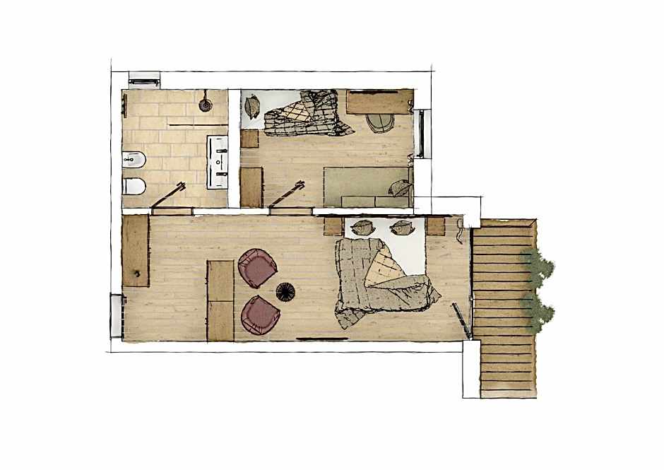 This suite on two floors offers a balcony and loggia with mountain view as well as a flat-screen TV.
