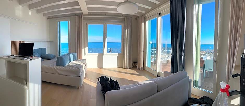 The apartment is beautiful, clean and has the best location you can imagine in Caorle. Perhaps it seems a bit expensive compared to the other apartments available on Booking, but the price includes a private garage for your car and amazing croissants and cappuccino for breakfast. Furthermore the building has two hot tubs, sunbeds and showers on the roof. The free beach is on the right side, the old town is right in front of the building.